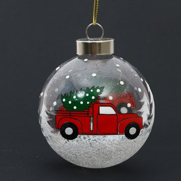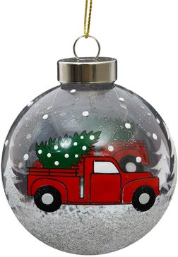 Стильный дизайн с изображением мощного грузовика привнесёт в традиционный новогодний декор современный и динамичный элемент. Прозрачное исполнение создаёт эффект объёмности, делая украшение ещё более привлекательным.