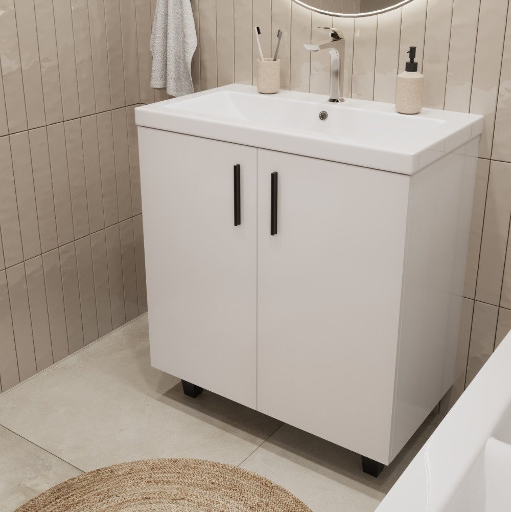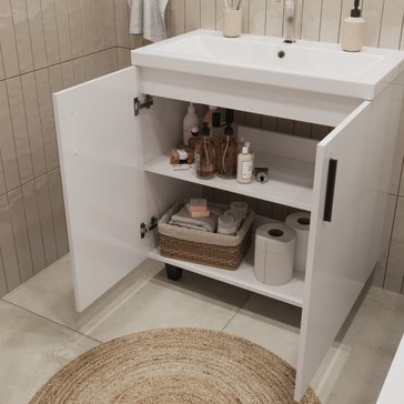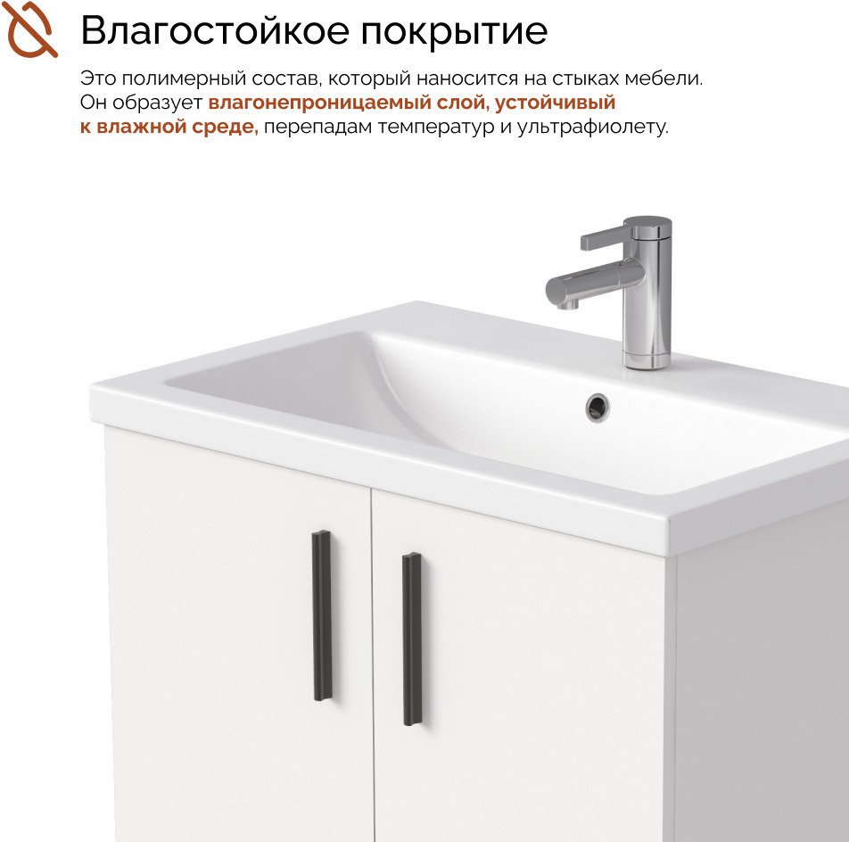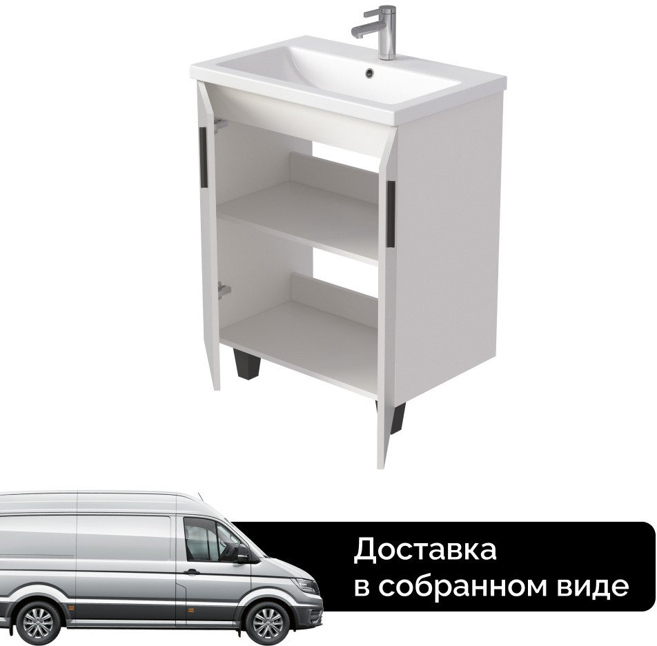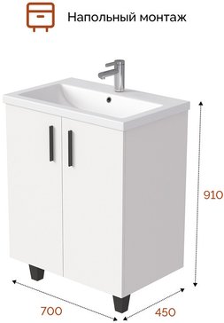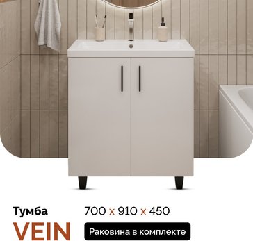 - Тумба напольная VEIN 70см белая аляска в комплекте с раковиной