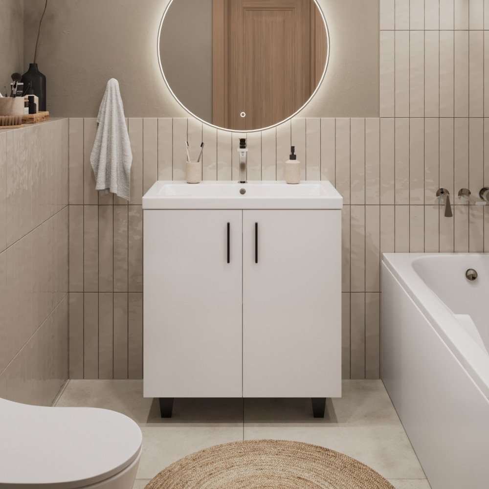 Тумба напольная VEIN 60см белая аляска в комплекте с раковиной