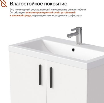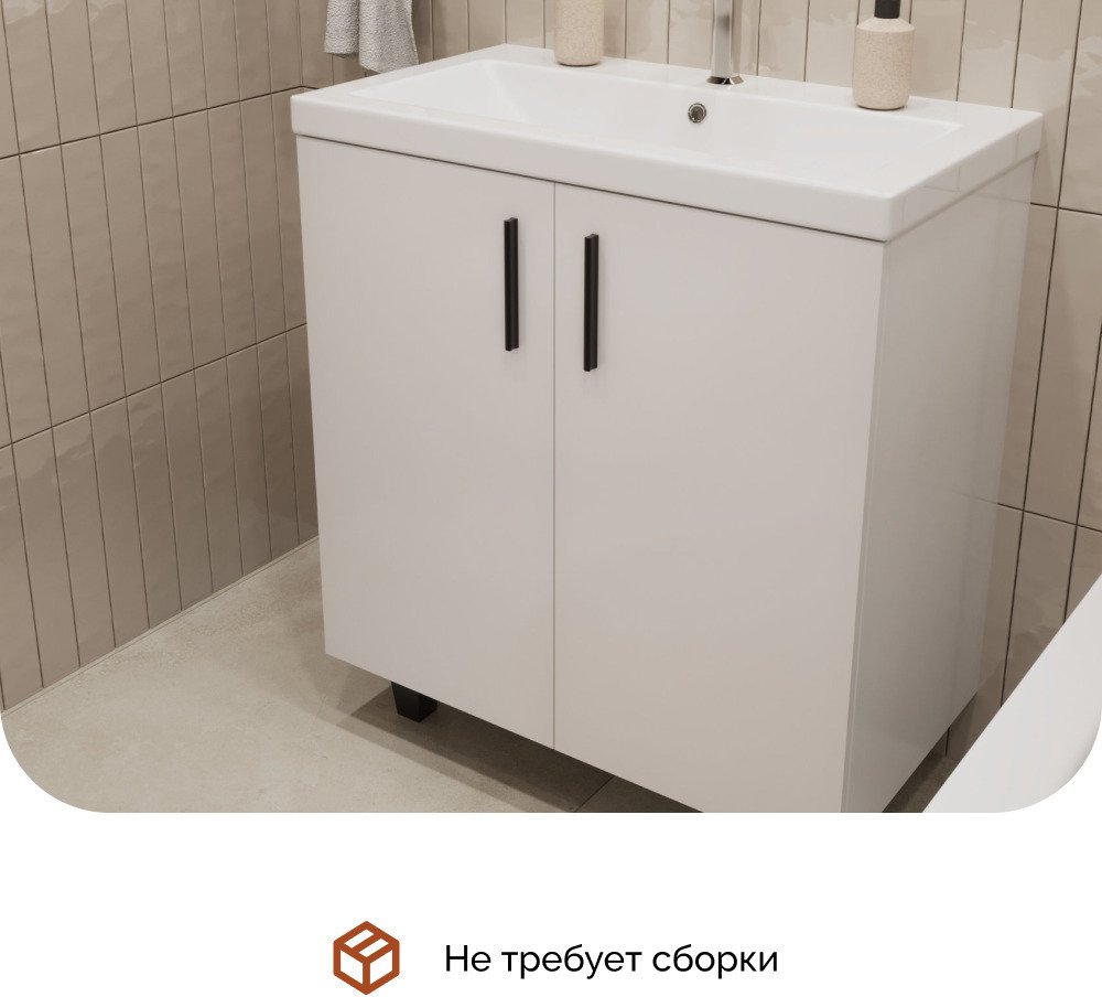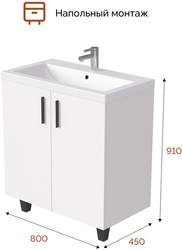 - Тумба напольная VEIN 80см белая аляска в комплекте с раковиной