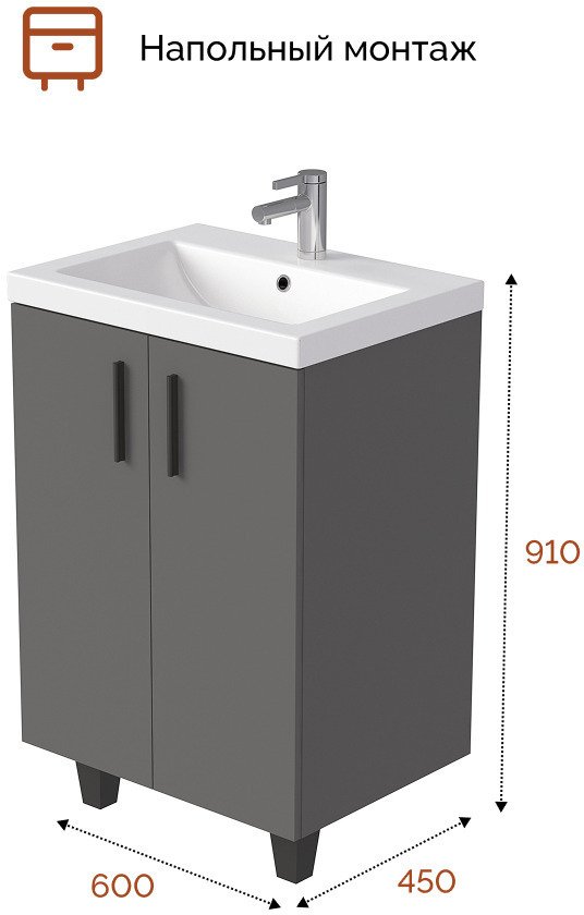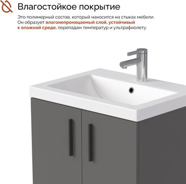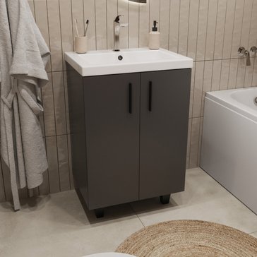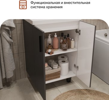 Тумба напольная VEIN 60см антрацит в комплекте с раковиной