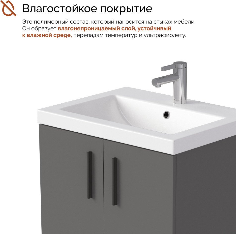 Тумба напольная VEIN 70см антрацит в комплекте с раковиной