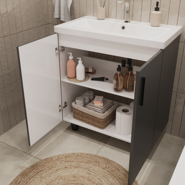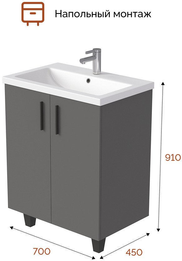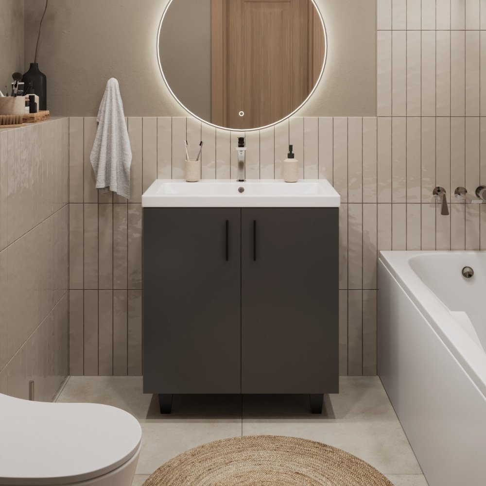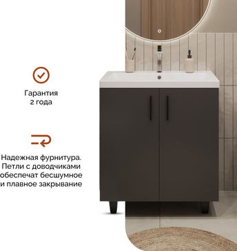 - Тумба напольная VEIN 70см антрацит в комплекте с раковиной