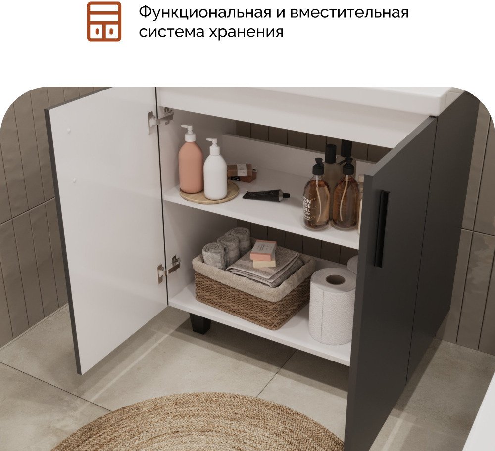 VEIN 70см антрацит — мощная тумба для большой семьи. Цвет не маркий, поверхность прочная. Очень довольна покупкой!