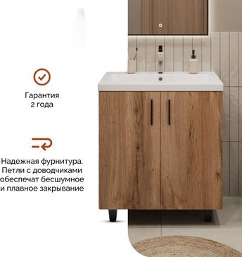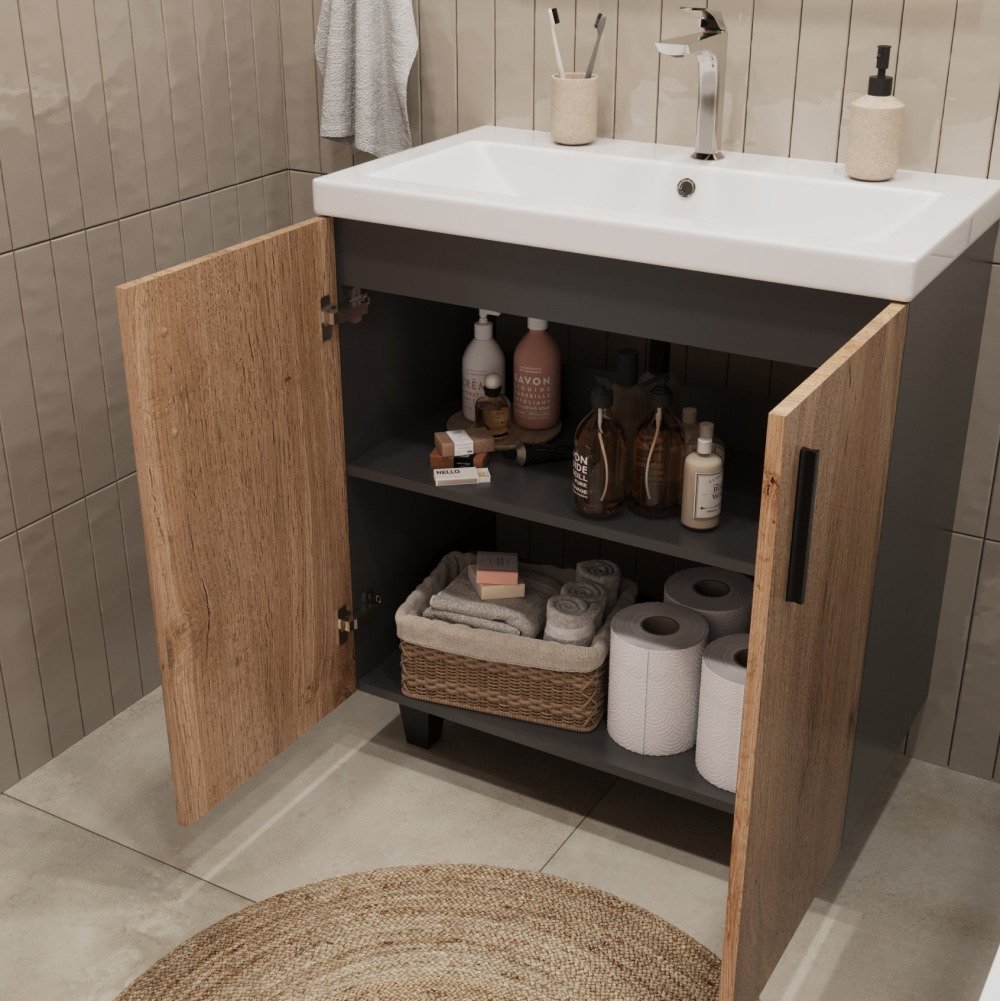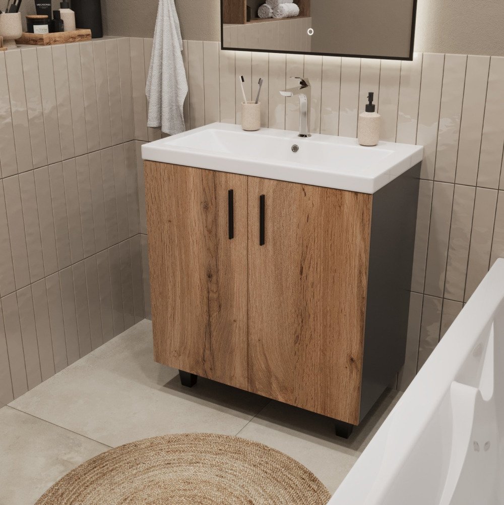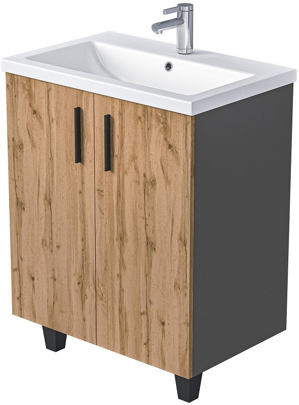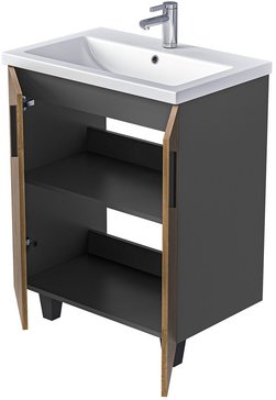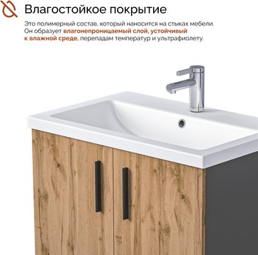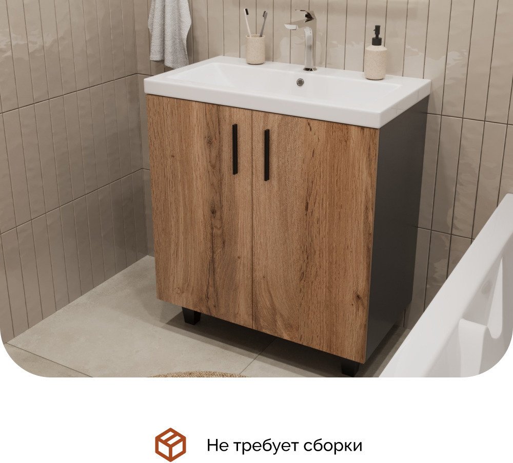 - Тумба напольная VEIN 70см антрацит/дуб вотан в комплекте с раковиной