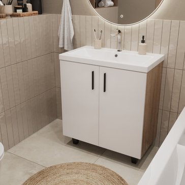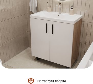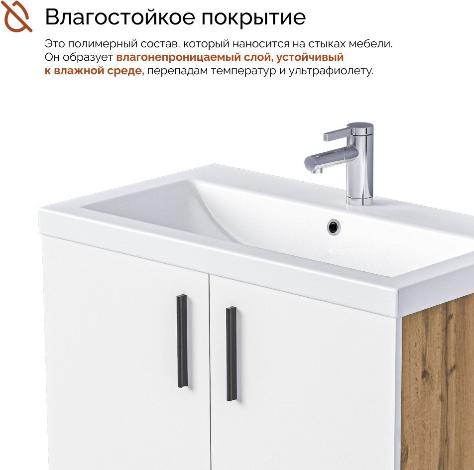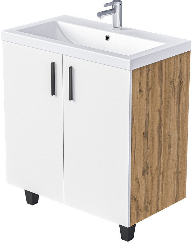 - Тумба напольная VEIN 80см дуб вотан/белая аляска в комплекте с раковиной