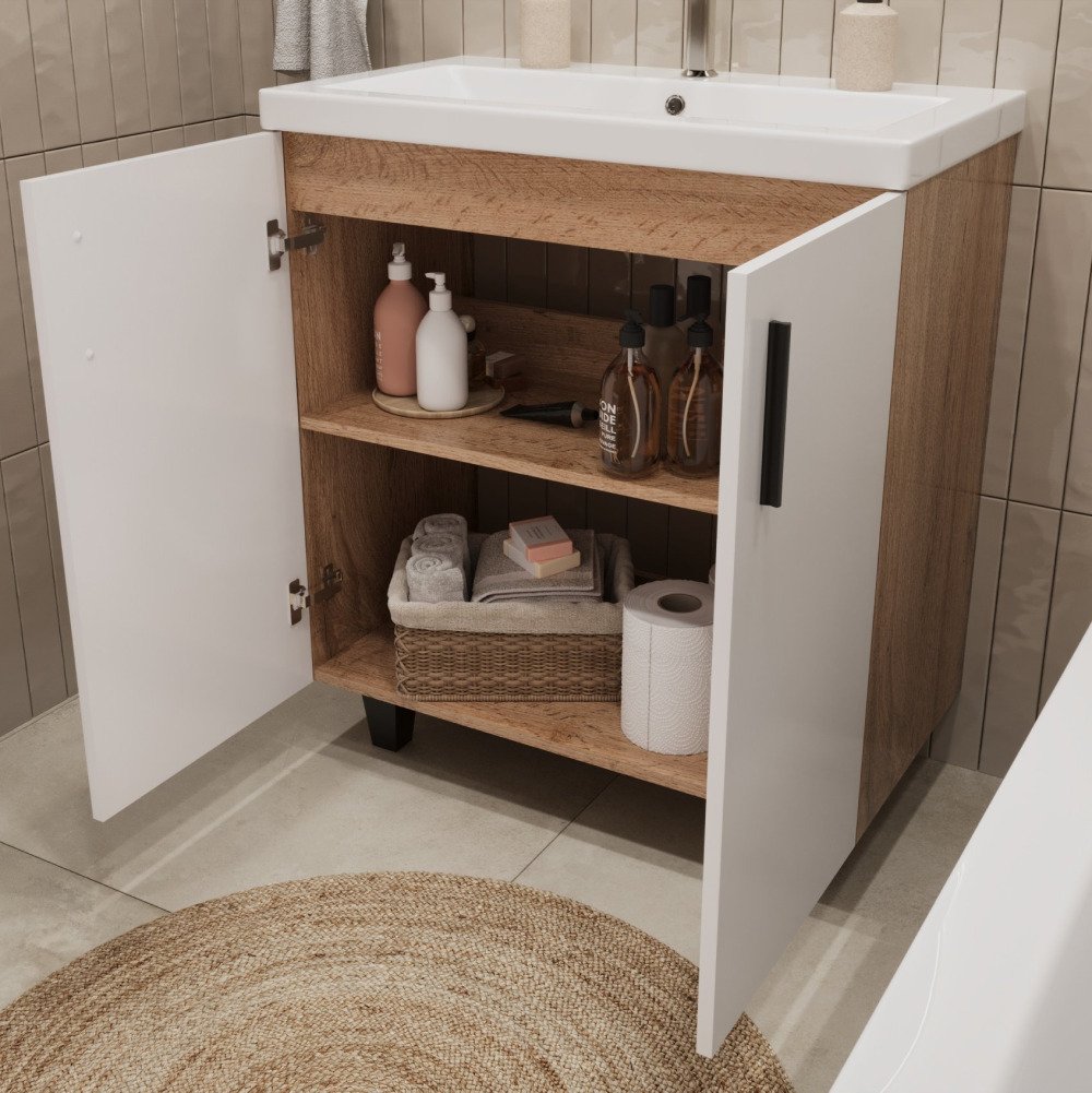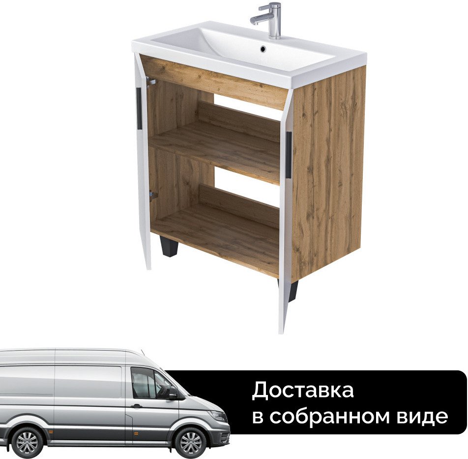 Тумба напольная VEIN 60см дуб вотан/белая аляска в комплекте с раковиной