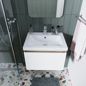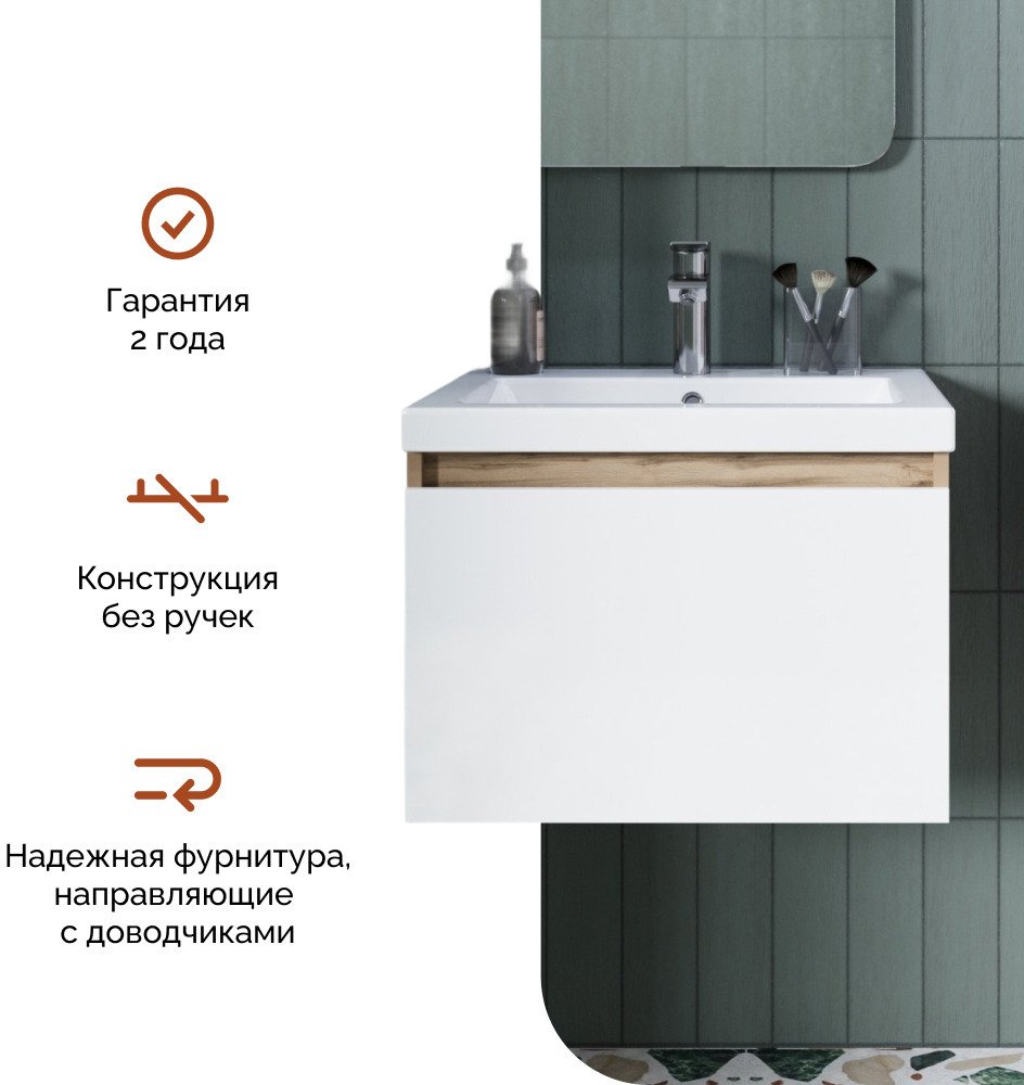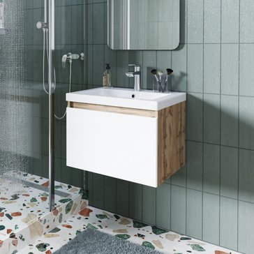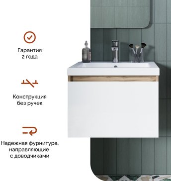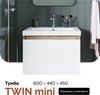 - Тумба подвесная TWIN mini 60см дуб вотан/белый глянец в комплекте с раковиной