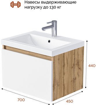 Тумба подвесная TWIN mini 70см дуб вотан/белый глянец в комплекте с раковиной