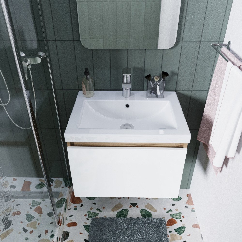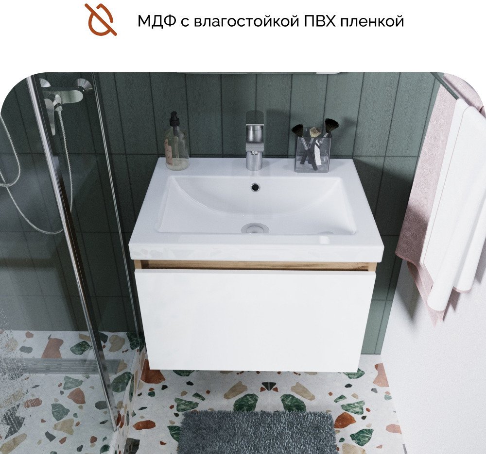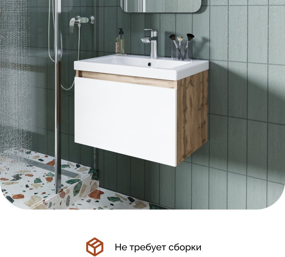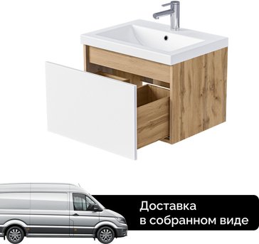 Тумба подвесная TWIN mini 60см дуб вотан/белый глянец в комплекте с раковиной