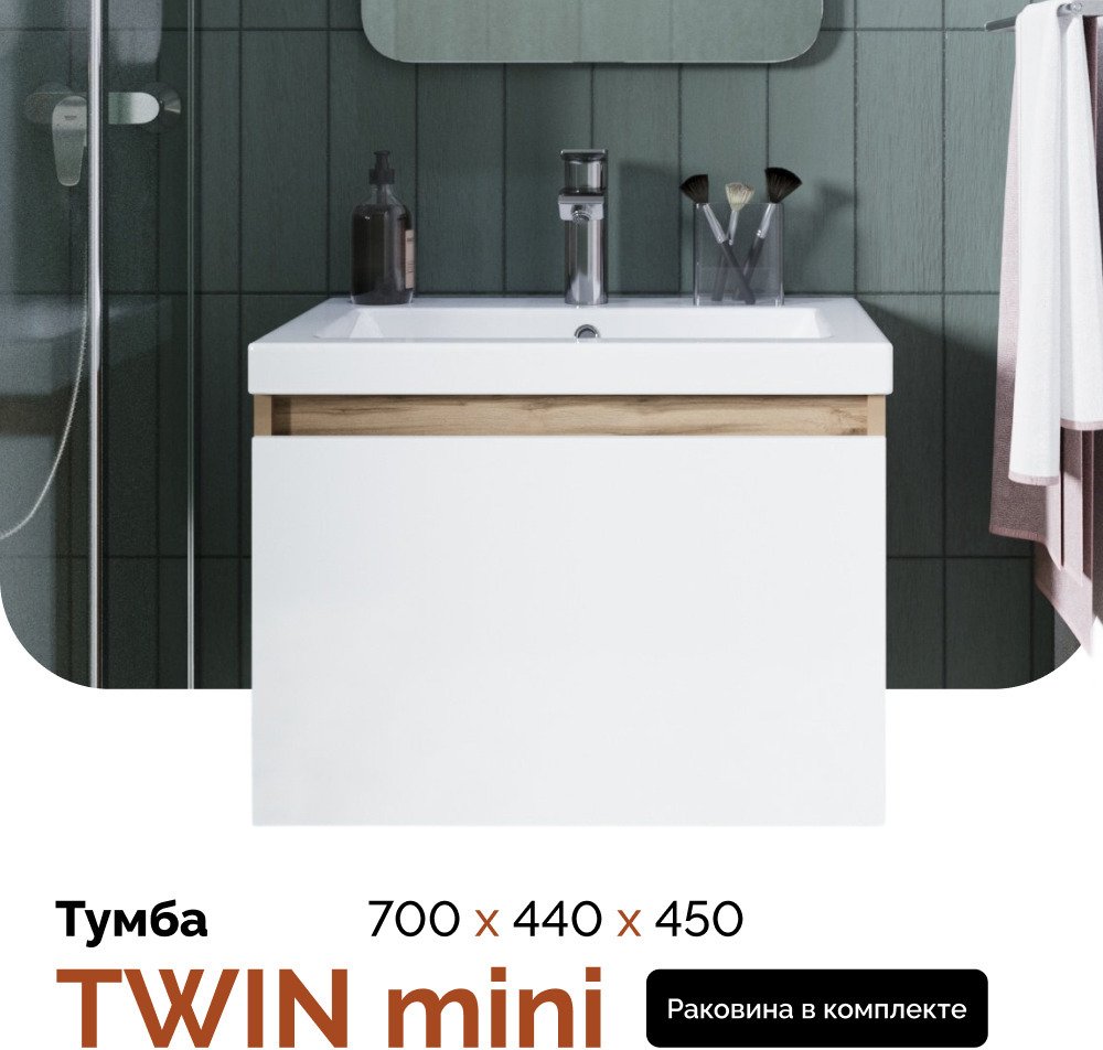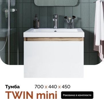 Тумба подвесная TWIN mini 70см белая аляска/белый глянец в комплекте с раковиной