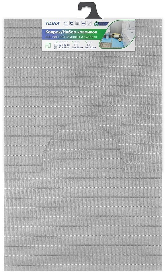 - Коврик для ванной комнаты комплект 50х85см, 50х52см ВИКТОРИЯ серый из вспененного ПВХ