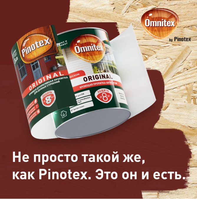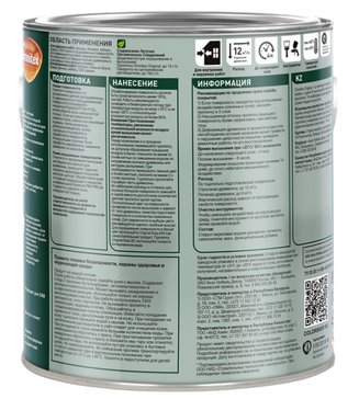 Кроющая декоративная пропитка для дачных строений • До 8 лет защиты* • Перекрашивает из темного в светлый цвет • Подходит для новых и ранее окрашенных поверхностей • Воск обеспечивает защиту от влаги и грязи, защищает от плесени и грибка • Легко разравнивается и не оставляет потеков на поверхности Описание Кроющая декоративно-защитная пропитка для фасадов деревянных строений. Подходит для новых и ранее окрашенных поверхностей. Обработанная пропиткой поверхность остаётся паропроницаемой и древесина продолжает «дышать». Применение воска в составе пропитки обеспечивает грязе- и водоотталкивающую способность. Содержит активные добавки против плесени и синевы. Подходит для применения в условиях умеренного климата. Декоративное покрытие Pinotex Original делает выразительной текстуру древесины, образует матовое покрытие, визуально скрывает небольшие дефекты древесины (сучки, пятна, потемнения). Область применения Pinotex Original идеально подходит для деревянных фасадов, беседок, заборов, OSB панелей, навесов и других деревянных поверхностей снаружи помещений. Для агрессивных атмосферных условий не рекомендуется использовать пропитку на твердых породах древесины. Особенности применения Работы рекомендуется проводить при температуре воздуха не ниже +10°C и не выше +25°C с относительной влажностью воздуха от 40 до 80%, влажностью древесины менее 18%. Перед нанесением и в процессе использования тщательно перемешайте пропитку, не допуская образования пузырьков в банке. Произвести подготовку поверхности (ошлифуйте, затем уберите пыль неворсистой тканью). В случае, если на поверхности заметны гниль, смола или смоляные карманы, пятна ржави, дубильные вещества тщательно отшлифуйте поверхность, обработайте блокирующим грунтом Dulux Domus Base или антисептическим грунтом Pinotex Base. Наносить в 2-3 слоя кистью со смешанным ворсом по направлению волокон древесины. Торцевую часть поверхности древесины пропитайте особенно тщательно. Допустимо применение пропитки Pinotex Original база BW как самостоятельное финишное покрытие. Пропитка Pinotex Original база BC предназначена для применения только в колерованном виде. Внимание! При понижении температуры и увеличении относительной влажности воздуха время высыхания может увеличиться. Если поверхность находится под интенсивным воздействием солнечных лучей, рекомендуется наносить краску в 3 слоя. Деформация древесины в процессе усадки или несоблюдение условий нанесения может привести к нарушению целостности покрытия, в этом случае проведите ремонтные работы по восстановлению покрытия. Эксплуатацию окрашенной поверхности начинайте не ранее чем через 14 дней после окрашивания. Разбавление Разбавление не требуется.