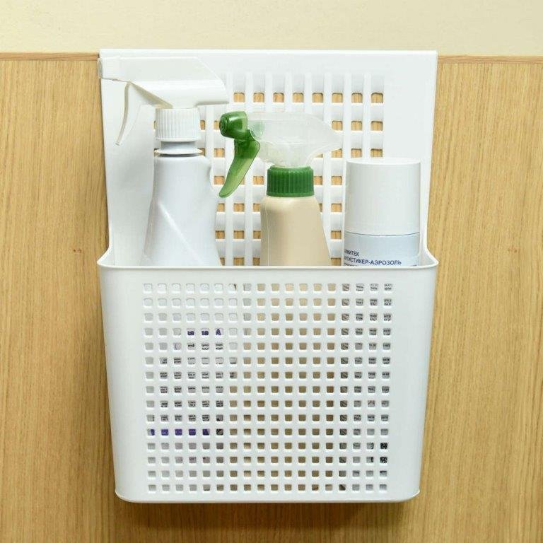 Отличное решение для хранения! Органайзер вместительный, крепится на дверцу без сверления. Все мелочи теперь на своих местах. Белый пластик — не бросается в глаза, смотрится аккуратно.