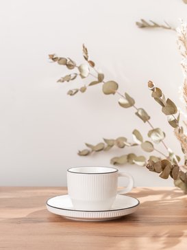 Безупречное качество. Глазурь без дефектов, ровные края, отсутствие посторонних вкраплений. Практичность. Можно использовать в микроволновой печи (без металлических элементов) и мыть в посудомоечной машине (деликатный режим). Эргономичность. Чашка удобно держится в руке, а блюдце обеспечивает надёжную опору. Долговечность. Устойчива к царапинам и помутнению при правильном уходе. Эстетика сервировки. Легко сочетается с другими предметами сервиза и декоративными элементами.
