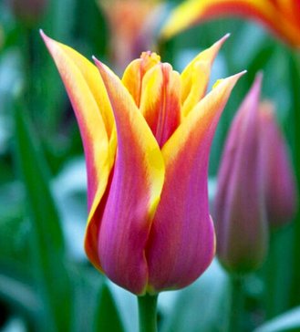 Откройте для себя великолепие тюльпана Баллада Дрим – изысканного сорта, который станет настоящей жемчужиной вашего сада!Заостренные алые лепестки в золотом обрамлении сложены в изящный бокал, напоминающий лилию.