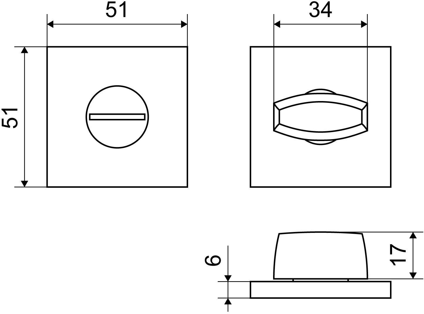 Сантехническая завертка-фиксатор для защелок. Материал - алюминиевый сплав, ЦАМ, гальваническое покрытие. Размер сечения квадрата - 6 мм. Накладка квадратной формы шириной 51 мм, толщиной - 6мм. В комплекте стяжки, крепежные шурупы.