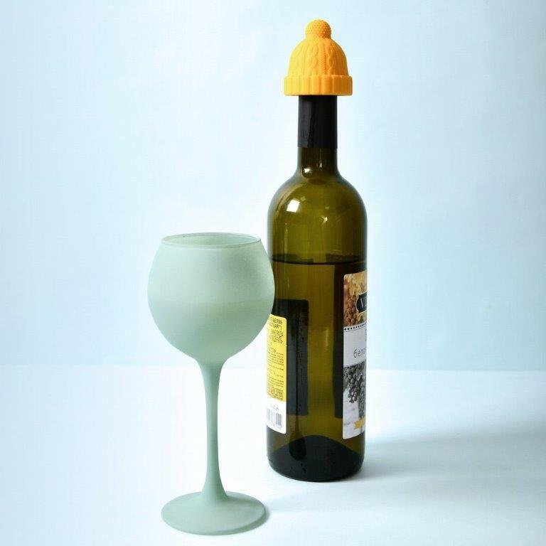 Пробка для бутылки в виде шапочки - оригинальный аксессуар на вашей кухне. Многоразовая пробка предназначена для закупоривания открытых бутылок с вином, маслом, уксусом и другими жидкостями. Пробка подойдет для горлышек стандартного размера. Она плотно фиксируется в горлышке бутылки и защищает содержимое от выветривания, окисления, попадания пыли и посторонних запахов. Перед первым использованием и после каждого применения промыть в теплой воде, можно с жидким моющим средством, сполоснуть проточной водой и просушить. Можно мыть в посудомоечной машине. ВНИМАНИЕ! В процессе использования может исчезнуть яркость цвета, но это не влияет на качество изделия.