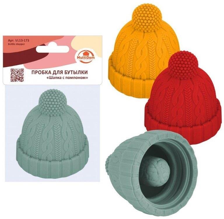 - Пробка д/бутылок Multidom Шапка с помпоном силикон
