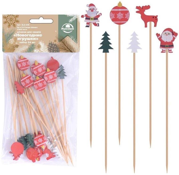 Шпажки используются при сервировке стола многослойными мини-бутербродами (канапе) из овощей, фруктов, ягод, сыров и мясных продуктов. Идеально подходят для фуршетов, вечеринок и праздников. Выбирайте любимые ингредиенты для приготовления порционных блюд, насаживайте их на шпажки и готовьте с удовольствием! Шпажки заменят десертные вилочки на вашем праздничном столе, а оригинальный дизайн поднимет настроение гостям. Шпажки продаются в наборе по 24 штуки, это оптимальный вариант, если вы планируете позвать большое количество гостей. Шпажки предназначены для одноразового использования. Изготовлены из дерева (бамбук). Общая длина шпажки 12 см.