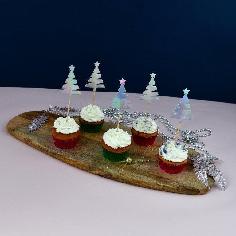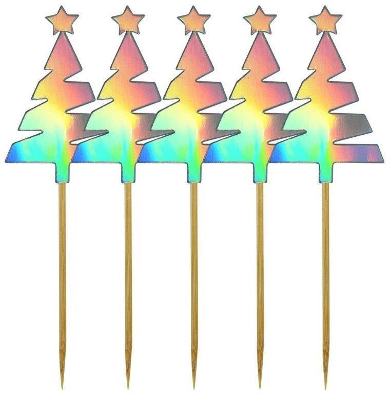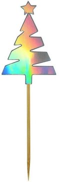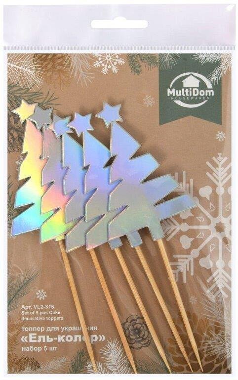 Придайте индивидуальности своему празднику и удивите ваших родных и близких. Топпером в форме елочки можно украсить торт, кекс, маффин или другую выпечку. Такой топпер добавит оригинальности и красоты в любой десерт и станет настоящим украшением праздника. Топпер можно использовать как шпажку при сервировке стола многослойными мини-бутербродами (канапе) из овощей, фруктов, ягод, сыров и мясных продуктов. Выбирайте любимые ингредиенты для приготовления порционных блюд, насаживайте их на топпер и готовьте с удовольствием! Топперы заменят десертные вилочки на вашем праздничном столе, а оригинальный дизайн поднимет настроение гостям. Предназначены для одноразового использования. Изготовлены из дерева, декор из бумаги. Общая длина 15 см.