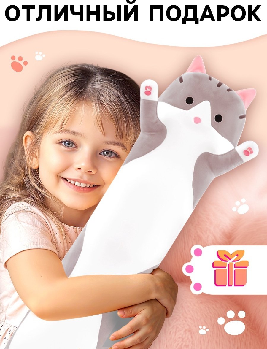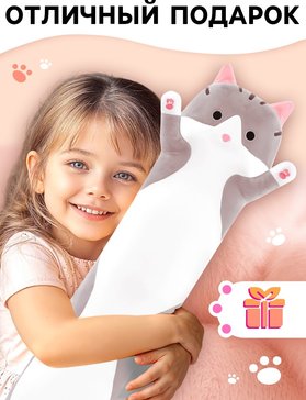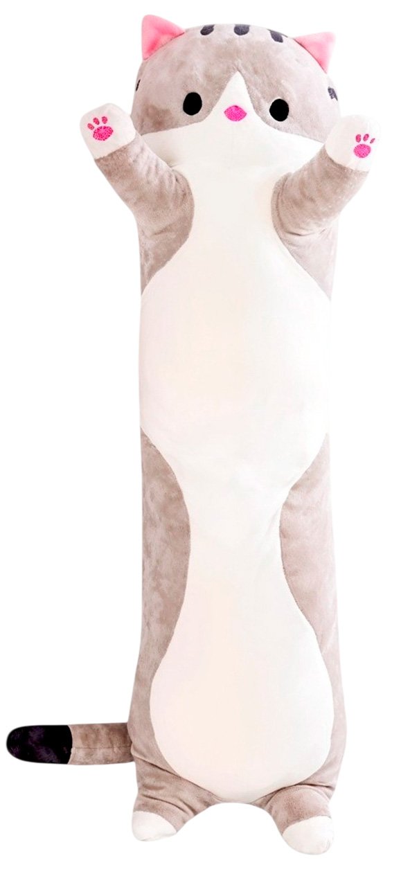 Игрушка‑подушка «Кот Батон» (50 см) — это необыкновенно уютный плюшевый друг, чей облик сразу вызывает улыбку и желание обнять. Его главная изюминка — вытянутая, «батонная» форма, которая делает игрушку узнаваемой и оригинальной. Такой силуэт не только забавляет, но и оказывается удивительно удобным: кот легко укладывается под голову, шею или спину, превращаясь в мягкую поддерживающую подушку. Его можно обнимать во сне, брать с собой в дорогу или просто держать рядом, когда хочется тепла и уюта. В облике Кота Батона чувствуется добродушная расслабленность: мягкие округлые черты, ненавязчивая мимика и спокойный взгляд создают ощущение, что он всегда готов разделить с вами тихий вечер или долгий сон. При этом в нём нет излишней «детскости» — его дизайн достаточно лаконичен и универсален, чтобы понравиться и детям, и взрослым.
