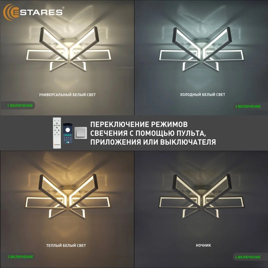 - управление с выключателя (нейтральный свет, холодный свет, теплый свет, ночник)