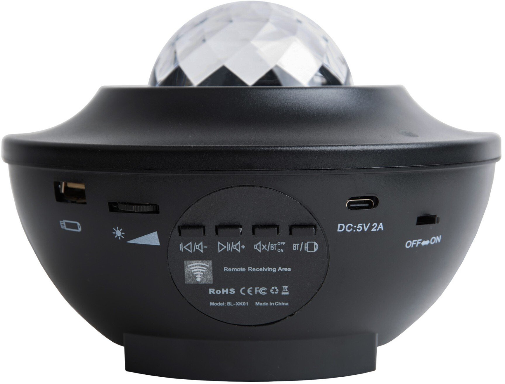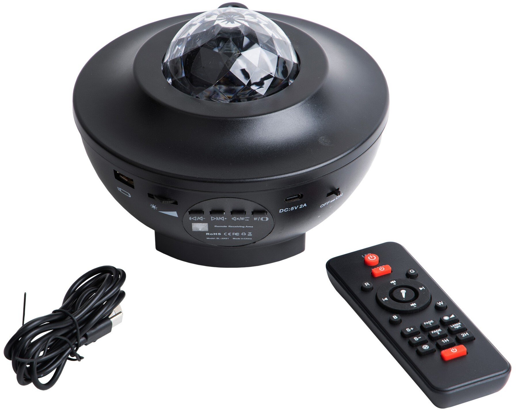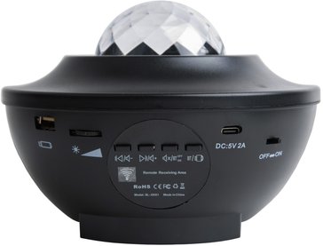 Доп. характеристики:10 цветов, 2 режима мерцания, эффект волны, синхронизация свечения с музыкой, лазер, регулирование яркости, таймер, управление с пульта ДУ (в/к), проигрывание музыки с телефона через bluetooth или с U-диска