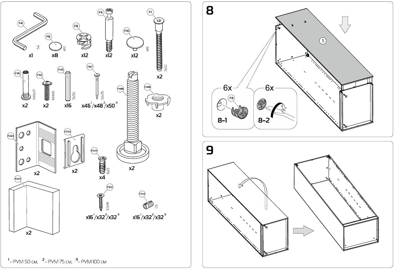 - Перед сборкой проверьте комплектацию и совпадение цвета всех деталей из одной партии.