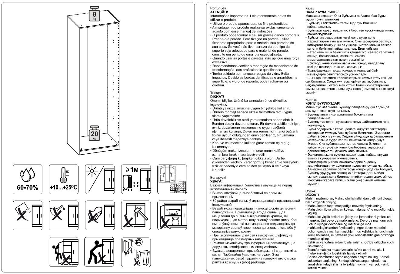 Глубина корпуса 58 см — это точно выверенный размер для комфортного размещения одежды на вешалках. Стандартная ширина плечиков 34–51 см — они свободно помещаются внутри, а дверцы закрываются без заломов на рукавах. Ваши вещи всегда будут выглядеть опрятно.