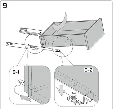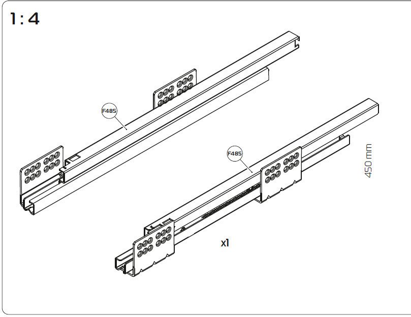 Шариковые направляющие полного выдвижения длиной 55 см с нагрузкой не менее 25 кг.