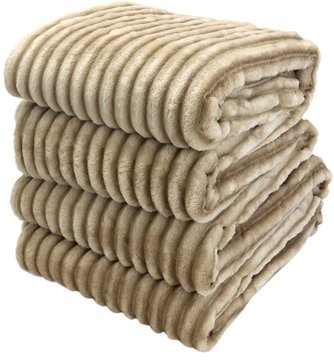 Плед велсофт Полоски 200х220см 100% полиэстер, бежевый