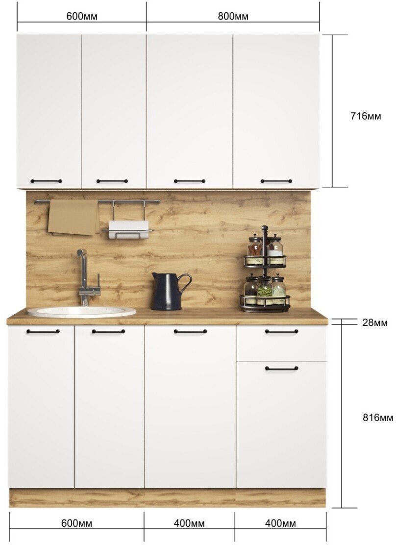 - Гарнитур кухонный Sura Хелмер 1,4м Вотан/Белый (со столешницей)