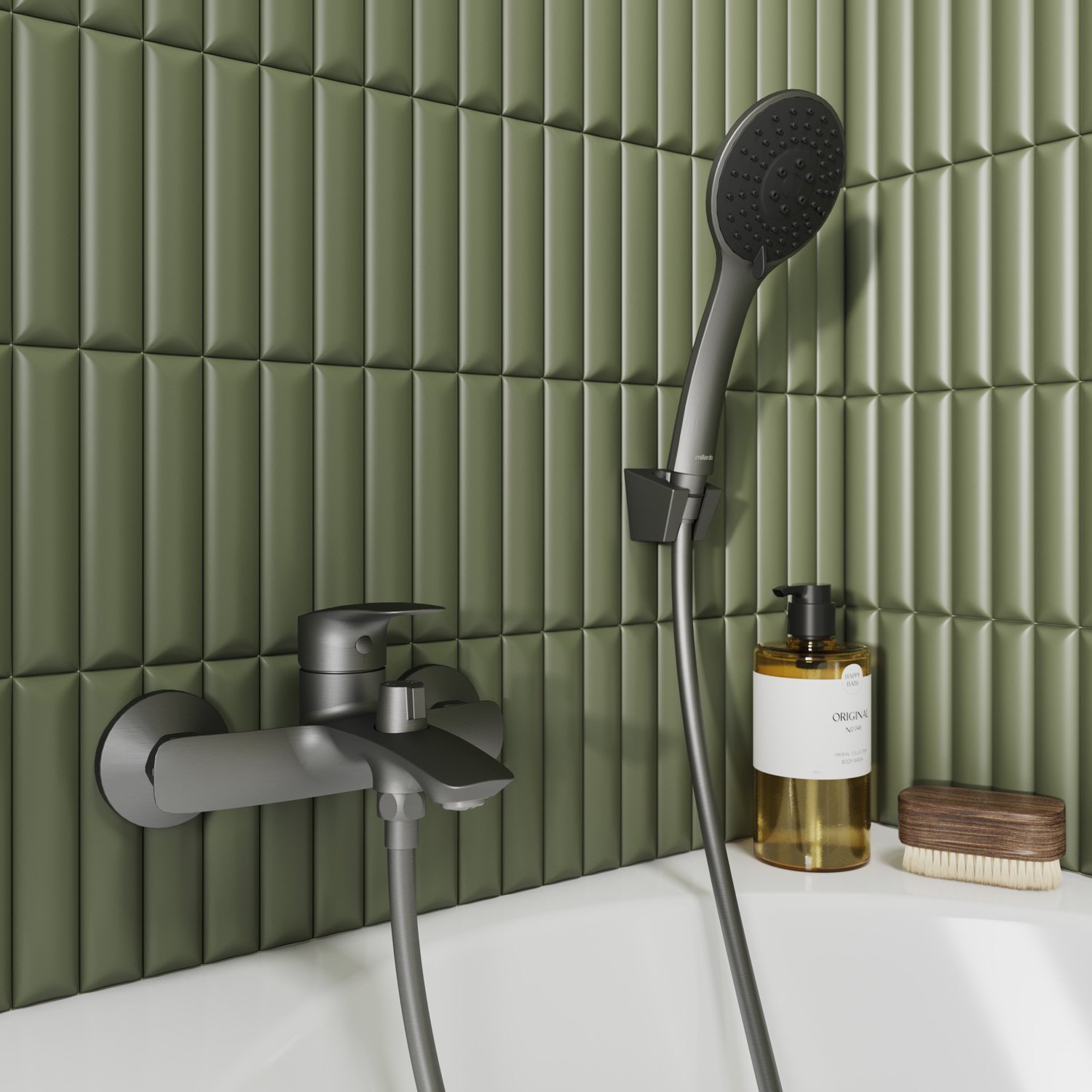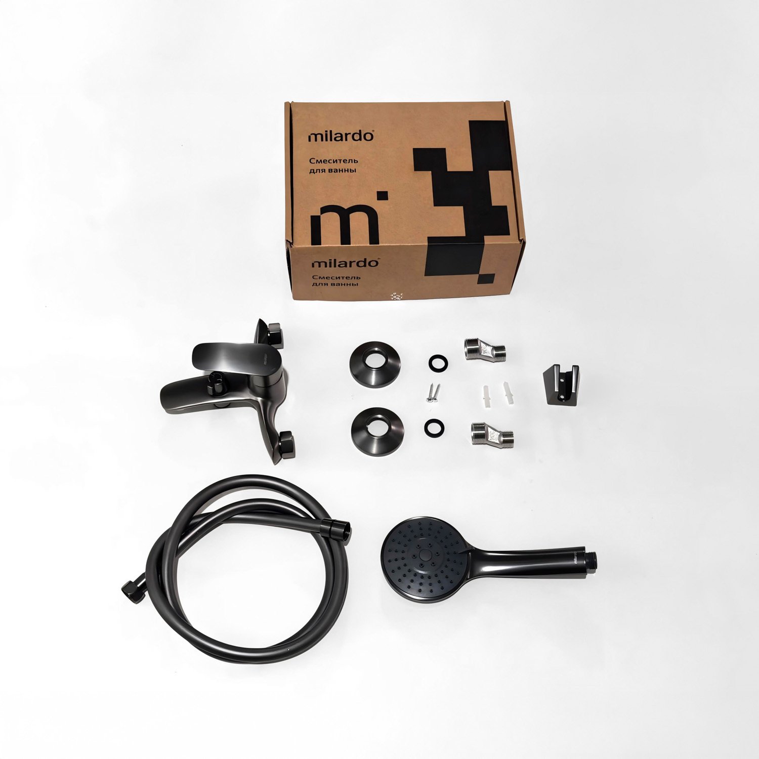 - Смеситель для ванны Milardo Rora RORGM00M02 в комплекте с душевыми аксессуарами, графит