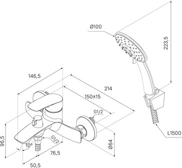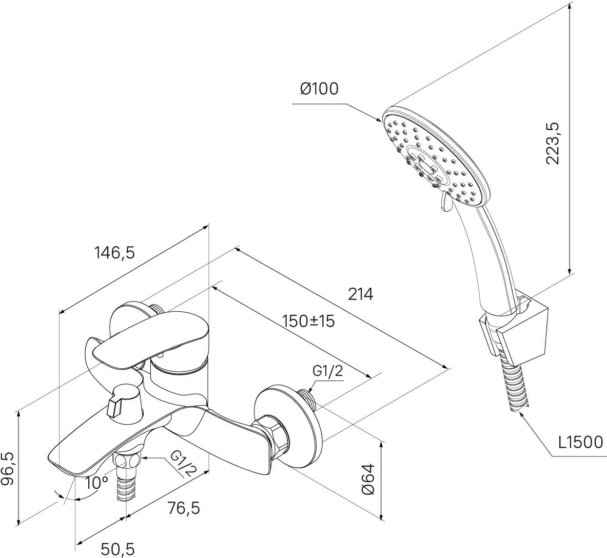 • Ручная лейка из прочного ABS-пластика, ПВХ-шланг (1,5 м) и крепеж идут в комплекте.