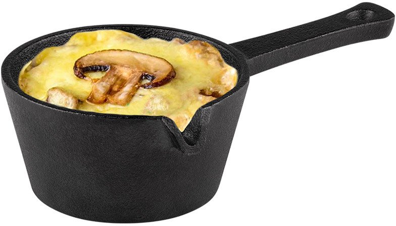 Эргономичная ручка длиной 17 см — удобный и безопасный захват. Практичный носик — аккуратное выливание соусов без подтёков. Универсальный размер (9,5 см в диаметре) — оптимальное распределение тепла. Прочный чугунный корпус — долговечность и надёжность.