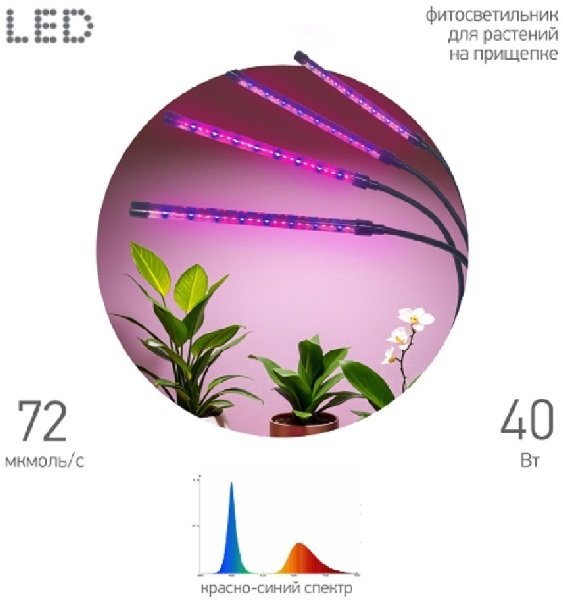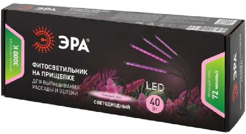 - Светильник для растений на прищепке ЭРА FITO-40W-АLED-RB красно-синего спектра 40 Вт