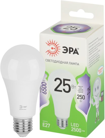 - Лампочка светодиодная ЭРА GREEN LINE LED A60-25W-865-E27 GL E27 25 Вт груша холодный свет