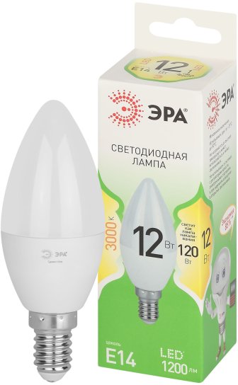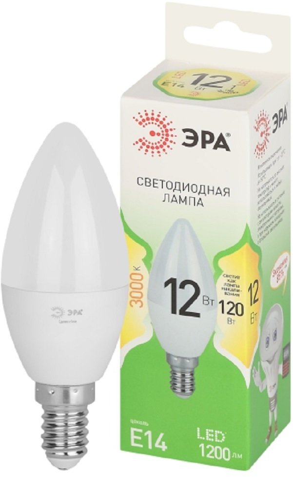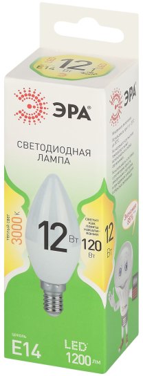 - Лампочка светодиодная ЭРА GREEN LINE LED B35-12W-830-E14 GL E14 12 Вт свеча теплый свет