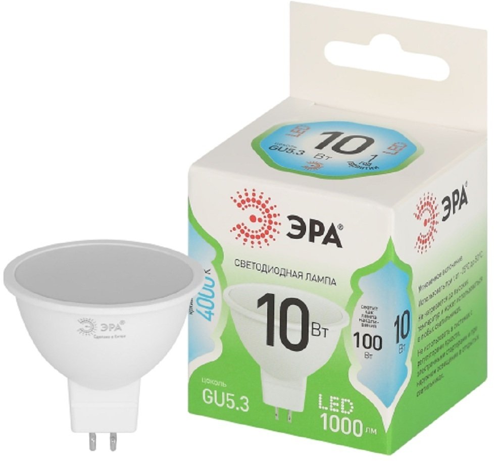 - Лампочка светодиодная ЭРА GREEN LINE LED MR16-10W-840-GU5.3 GL GU5.3 10 Вт софит яркий белый свет