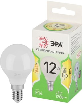 - Лампочка светодиодная ЭРА GREEN LINE LED P45-12W-830-E14 GL E14 12 Вт шар теплый свет