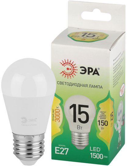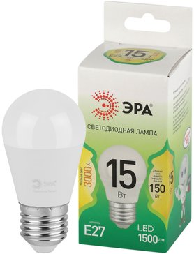 - Лампочка светодиодная ЭРА GREEN LINE LED P45-15W-830-E27 GL E27 15 Вт шар теплый свет