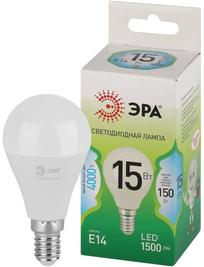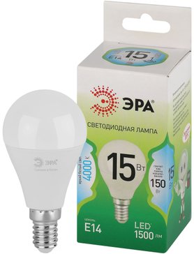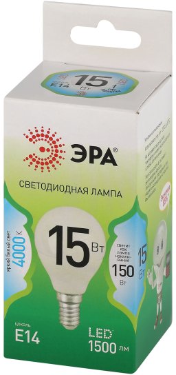 - Лампочка светодиодная ЭРА GREEN LINE LED P45-15W-840-E14 GL E14 15 Вт шар яркий белый свет