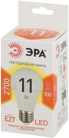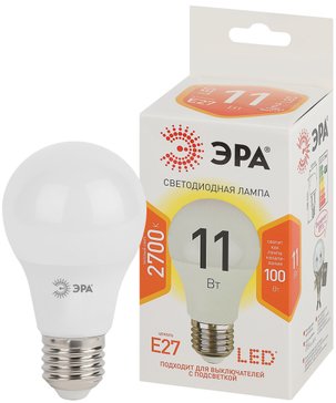 - Лампочка светодиодная ЭРА STD LED A60-11W-827-E27 E27 / Е27 11 Вт груша теплый белый свет