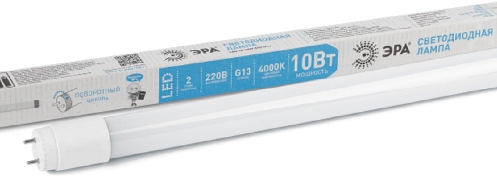 - Лампа светодиодная ЭРА STD LED T8-10W-840-G13-600mm G13 поворотный 10Вт трубка стекло нейтральный белый свет