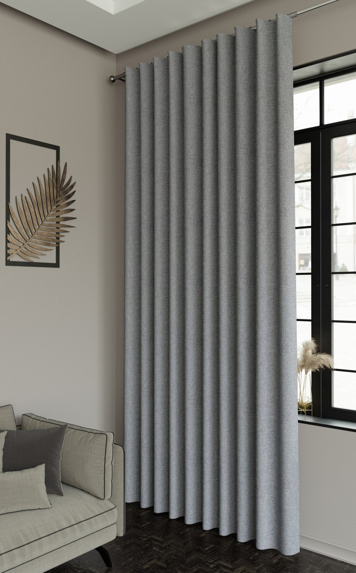 Светло‑серая портьера из рогожки привносит в интерьер сдержанную элегантность и тактильную привлекательность. Характерная фактура ткани с рельефным переплетением нитей создаёт интересную игру света и тени, придавая окну живой, «дышащий» облик. Мягкий нейтральный оттенок наполняет пространство воздухом, визуально расширяет его и служит идеальной основой для любых дизайнерских решений — от минимализма до скандинавского стиля.