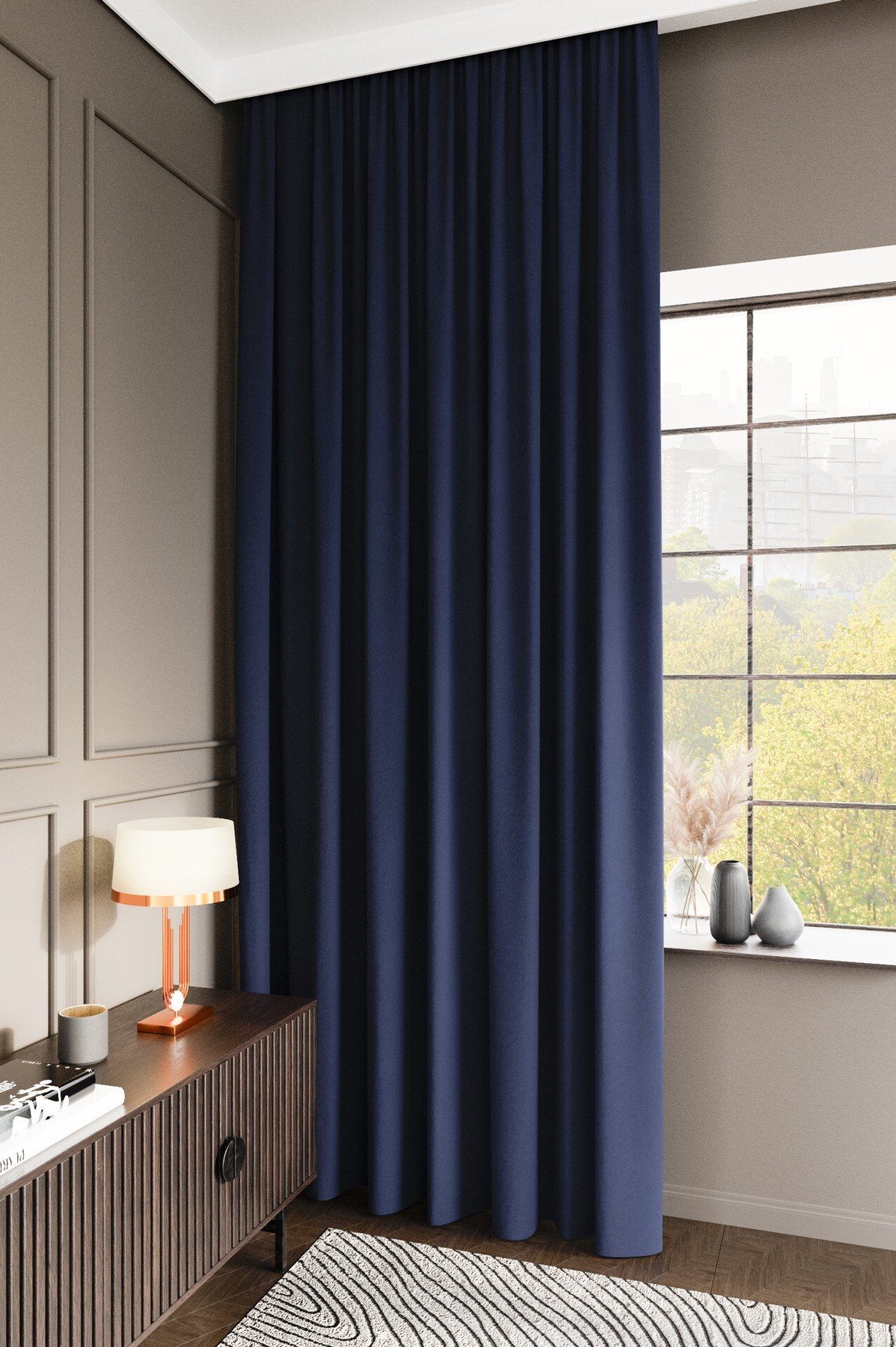 Такая портьера легко вписывается в разные стилистические решения: от классической сдержанности до современного лофта с акцентом на фактурные материалы. Тёмно‑синий цвет работает как универсальный фон — он гармонично сочетается с нейтральными оттенками (белый, серый, бежевый) и эффектно контрастирует с металлическими акцентами (золото, латунь, хром). Помимо декоративной функции, бархат эффективно задерживает свет и приглушает внешние шумы, превращая комнату в уединённое, защищённое пространство для