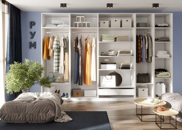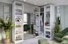 Белые полки отражают свет, делая внутреннее пространство шкафа светлее и просторнее, что особенно важно для гардеробных без естественного освещения.