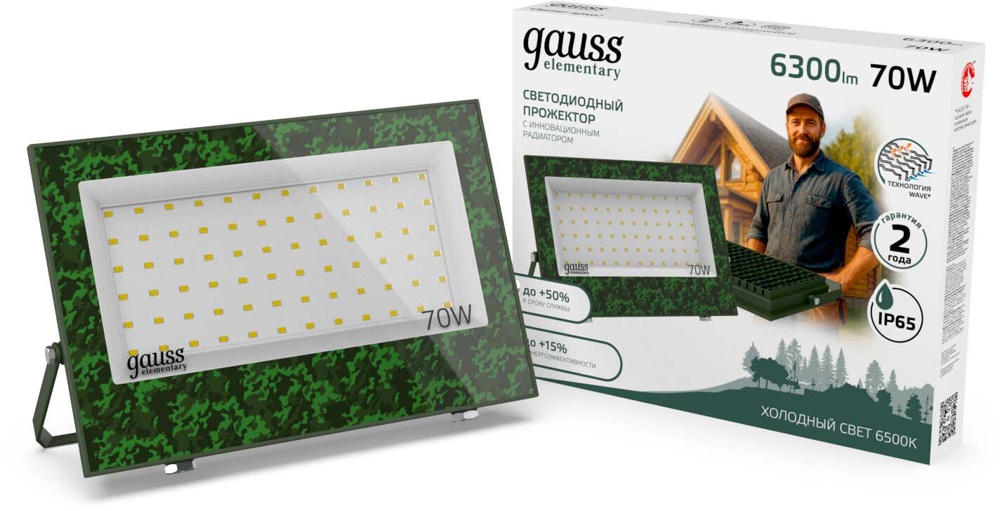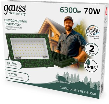 - Прожектор светодиодный Gauss Elementary 70W 6300lm IP65 6500К ХАКИ 1/20