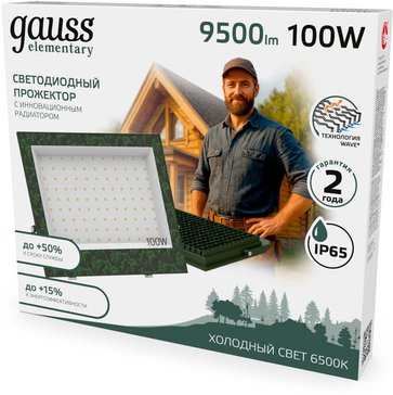- Прожектор светодиодный Gauss Elementary 100W 9500lm IP65 6500К ХАКИ 1/20